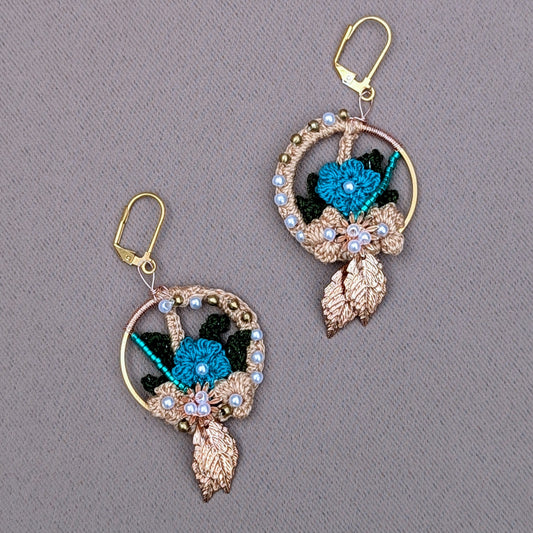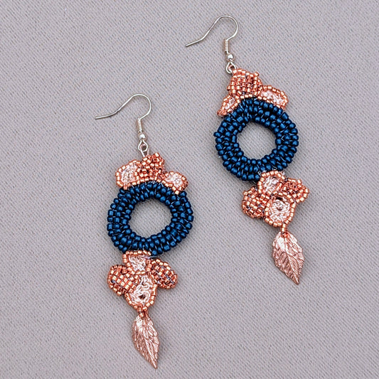 Aloki | Blue Gold Hoop Floral Motif Indian Beaded Earrings