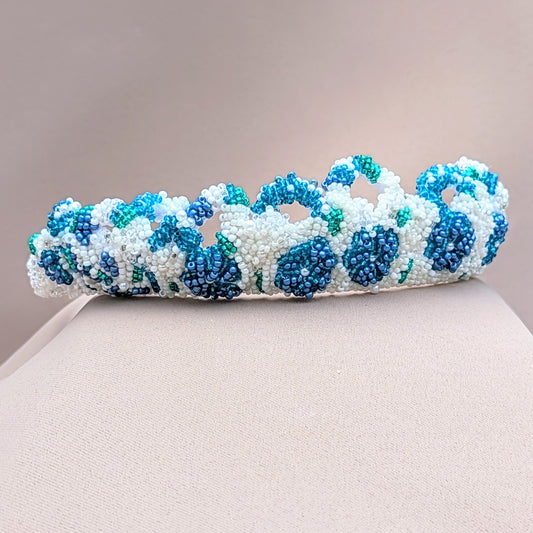 Ocean Inspired Blue & White Floral Bridal Tiara with Matching Earrings